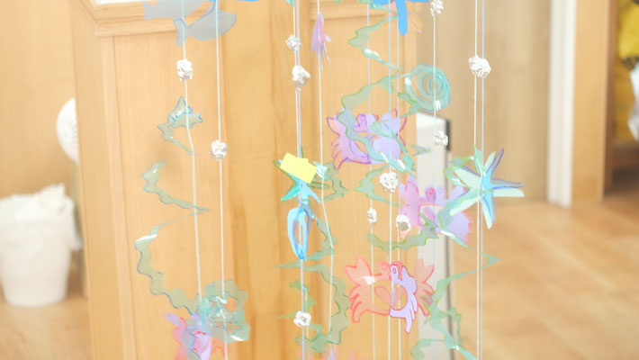 25日 8月 2025 夏休みの工作⓵ 今年の夏休みの工作は、まず、海のモビールを作りました。画用紙や、色付きファイルで魚やクラゲなどを作り吊り下げたものです。1・2年生と3年生以上では作り方が違いますが、どちらも涼しげなモビールです。 tagPlaceholderカテゴリ: